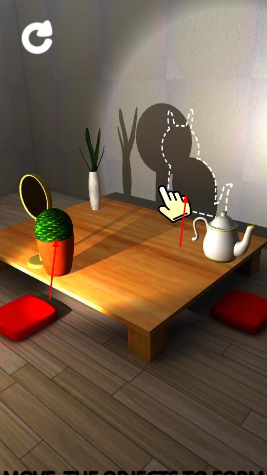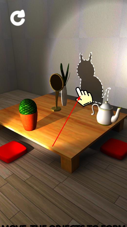 2、滑动屏幕旋转或移动光源与物体,实时观察影子变化,通过微调角度使影子轮廓逐渐贴近目标动物形状。