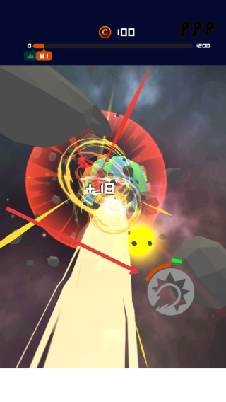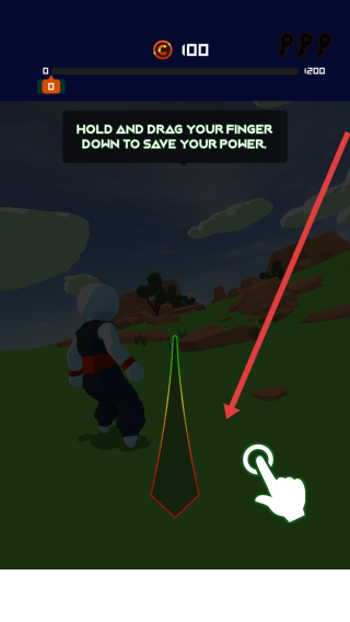 2、在气功飞行时,操控角色撞击物体(红箭头指向),获取道具或分数,推进“run”进程。