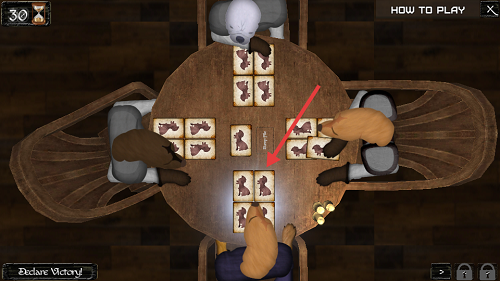 4、随机事件:打牌到第三回合可能突然闯进喝醉的犀牛,要么花硬币请它喝酒要么等着看牌桌被撞碎。