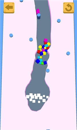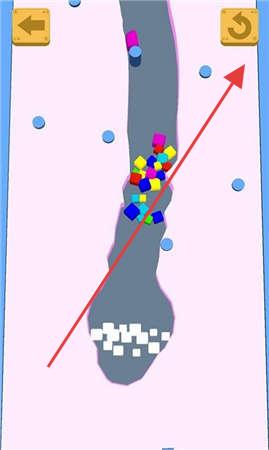 2、切换灰色通道关卡,操作界面,让方块群按箭头路径前行,收集沿途彩色方块,避开障碍。