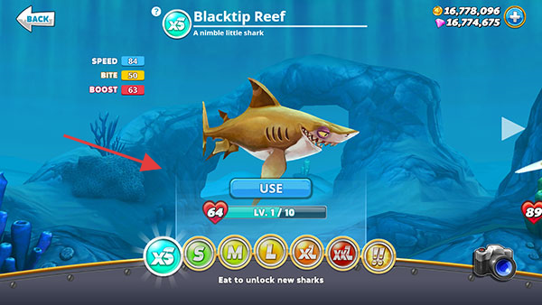 2、多样鲨鱼个性养成:从XS级到XXX级多种鲨鱼可供操控,每种鲨鱼有独特能力,如爆发破坏骨头、吞食大型猎物等,培养专属强大鲨鱼队伍,体验不同鲨鱼的战斗风格。