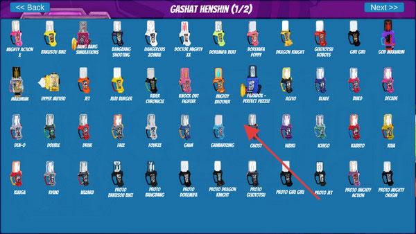 1、变身卡带玩法多样:开启后,手机屏幕上呈现腰带,点击右上角henshin打开卡带界面,海量卡带包含所有Ex-Aid中的假面骑士道具,丰富变身玩法,带来更多惊喜与策略性。