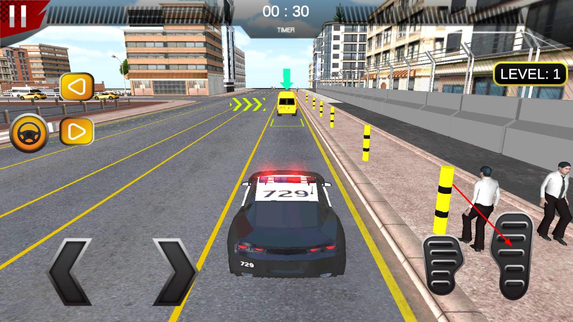 3、将警车完全驶入黄色泊车区域,车身不压线且车头朝向正确即可通关,根据停车耗时与精准度获得评分。