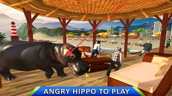 1、河马角色扮演:在海滩和城市中化身为野生河马,体验河马的生活习性,运用河马强大的力量展开破坏,感受作为大型动物的威力与震撼。