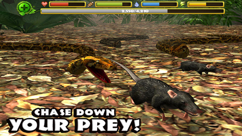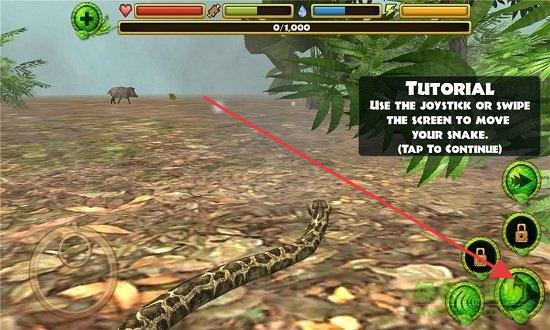 3、多元生存繁衍挑战:除捕猎外需完成繁衍使命,寻找配偶孕育后代并守护幼蛇成长,与老虎鳄鱼等天敌展开领地争夺。