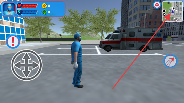 2、靠近救护车,点击右侧操作按钮,驾驶救护车,执行救援任务。