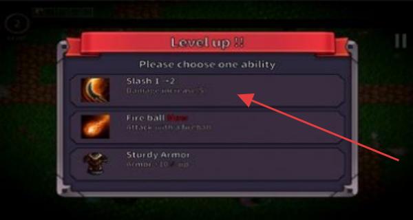 2、升级时,选择【SlashI-2】等技能,提升角色战斗能力,适应关卡挑战。