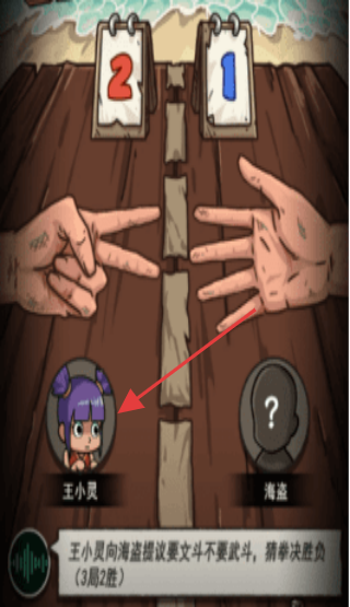 1、参与猜拳对决,选择对应手势,帮助【王小灵】赢下海盗,推进剧情。