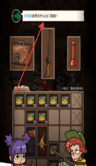3、根据【艾希该带什么出门探险?】提示,从背包选合适物品,助力探险流程。