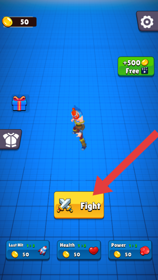 1、“LastHit(最后一击)×250”“Health(生命值)×250”“Power(力量值)×250”,呈现初始可点击【Fight】开始战斗的界面。
