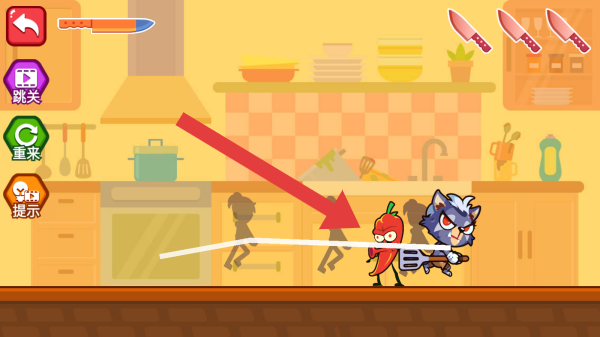 3、厨房(有炉灶、锅碗、厨具、橱柜等),呈现角色在厨房与辣椒敌人战斗的关卡场景。