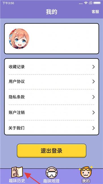 3、点底部“趣味历史”“趣味地理”“我的”,切换板块;在“我的”管理收藏、账户等。