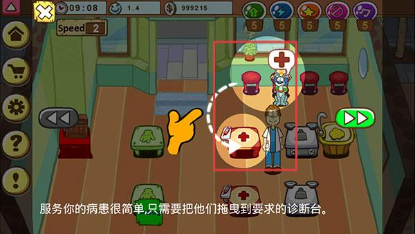 1、医院经营玩法:管理上午下午高峰时段,合理安排诊疗区美容区住院部动线,通过加急服务按钮优先处理稀有宠物诊疗需求。