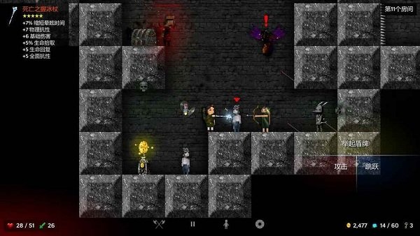 2、随机地图生成:每一次进入地牢都会生成随机的地图布局,让玩家每次冒险都有新鲜感,避免重复体验,提升游戏的可玩性与探索欲望。