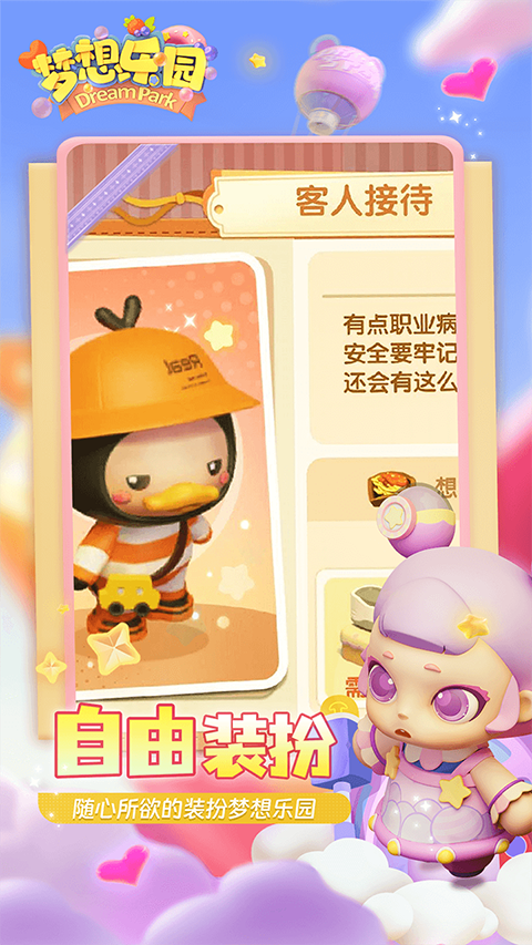 - 梦想乐园H5是一款治愈系装扮经营类作品,玩家将在充满温情的虚拟乐园中开启店铺经营之旅,在这片充满爱的空间里,玩家需综合考量店铺星级、菜谱研发、市