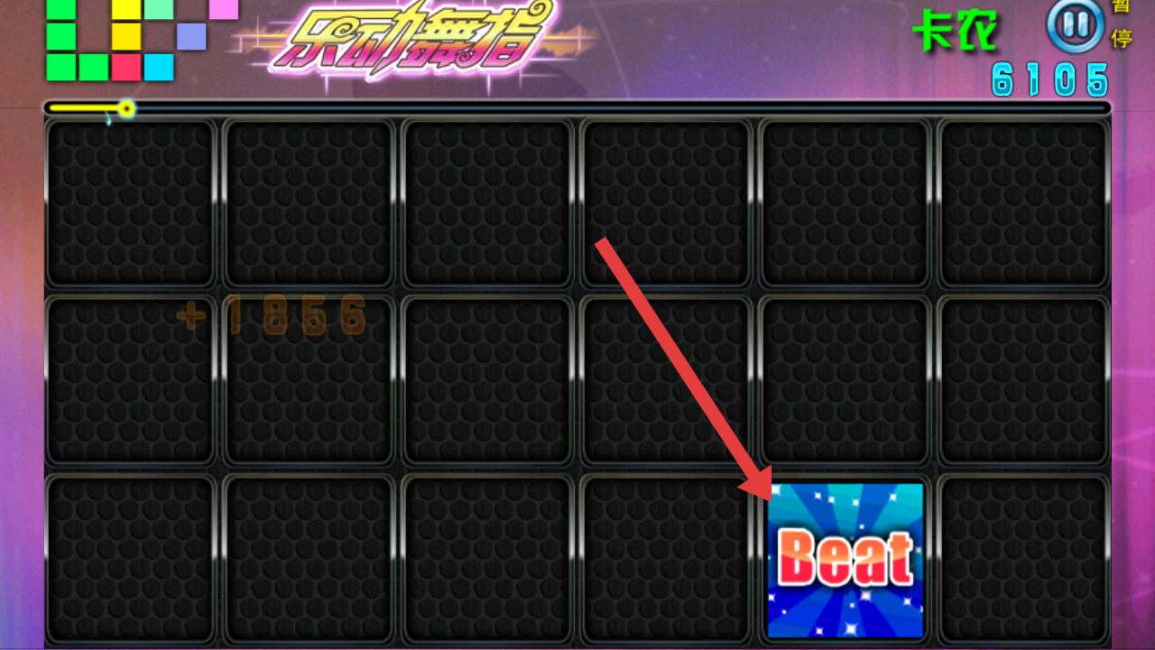 3、演奏游戏中及时点击下落的“Beat”按键,积累分数(如6105)与连击,完成乐动舞指的挑战。