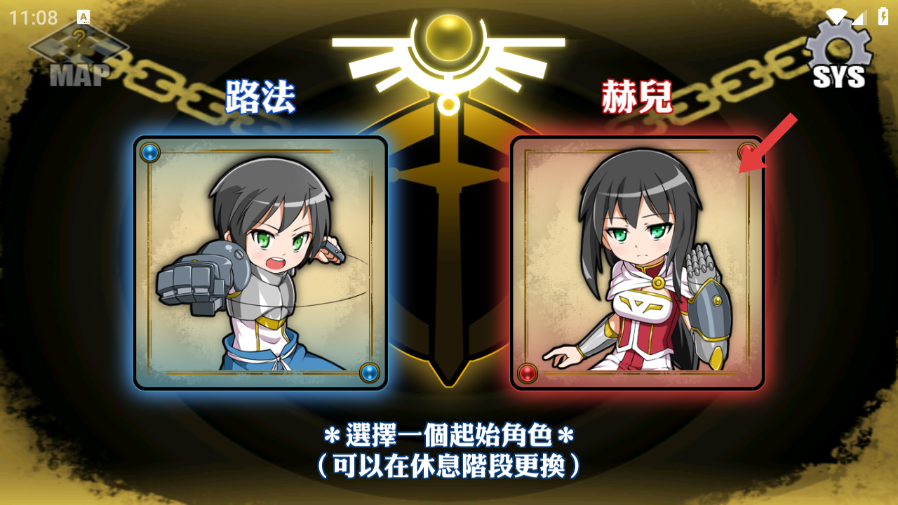 3、在角色选择页面,点击箭头指向的【赫兒】角色卡,选定其作为起始角色(休息阶段可更换)。