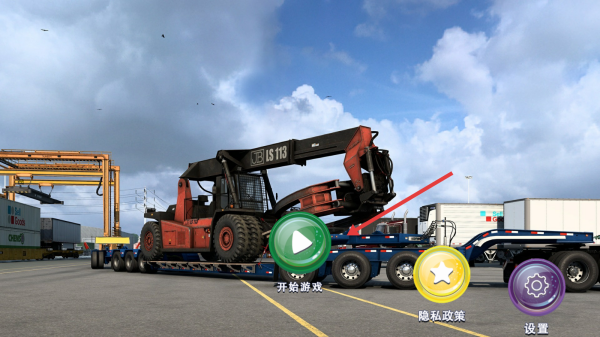 1、点击【开始游戏】,先选叉车任务,在港口场景熟悉操作,用摇杆控方向、按键操作叉车装卸货物,精准放置集装箱,完成基础运输。