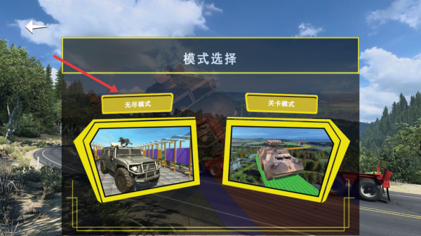 2、进入模式选择,“无尽模式”适合练手,驾驶卡车在开放道路行驶,按路标、任务指引运输物资,避障碍,积累驾驶经验与金币。