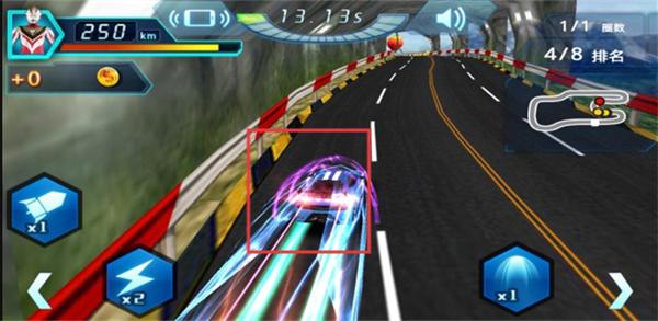 2、游玩的过程中通过方向盘操控赛车行驶,在弯道漂移积累能量,触发奥特曼铠甲技能对抗赛道上的怪兽阻碍。