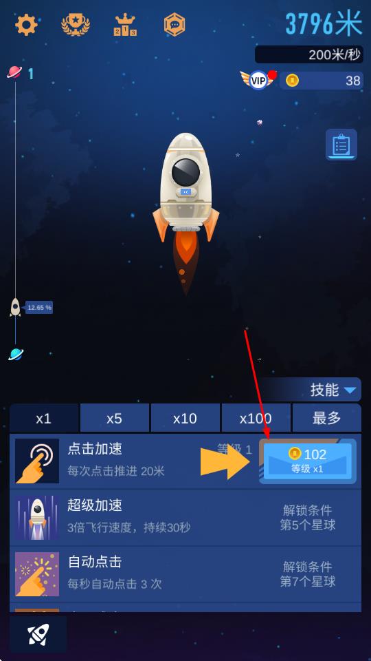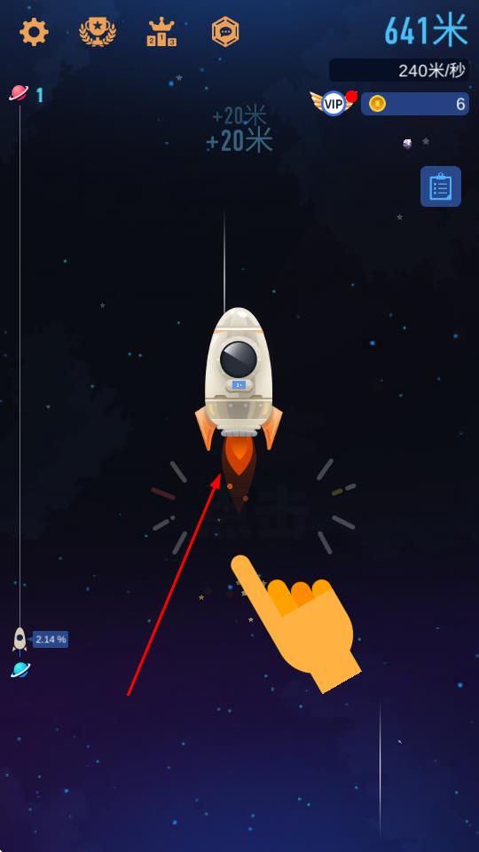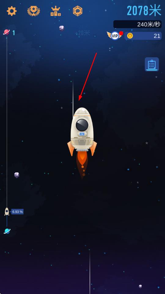 2、在星系地图界面,点击目标行星图标进入探索区域,操控火箭调整飞行姿态,为大气层穿越与资源采集做好准备。