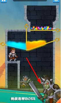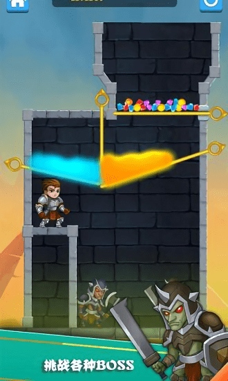 3、在成功拉开正确拉环后,帮助英雄避开岩浆、击败怪兽并收集宝藏,与公主牵手即可完成当前关卡的救援挑战。