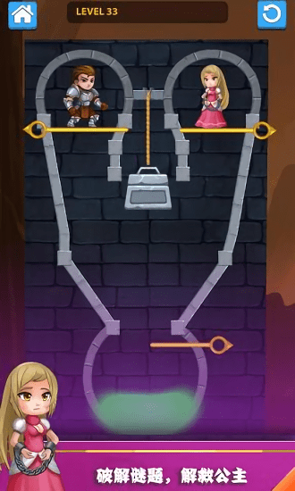 3、爱情救援主题:以英雄救美为叙事主线,每关通过拉环解谜突破怪物防线,在益智挑战中融入浪漫元素,增添情感代入感。