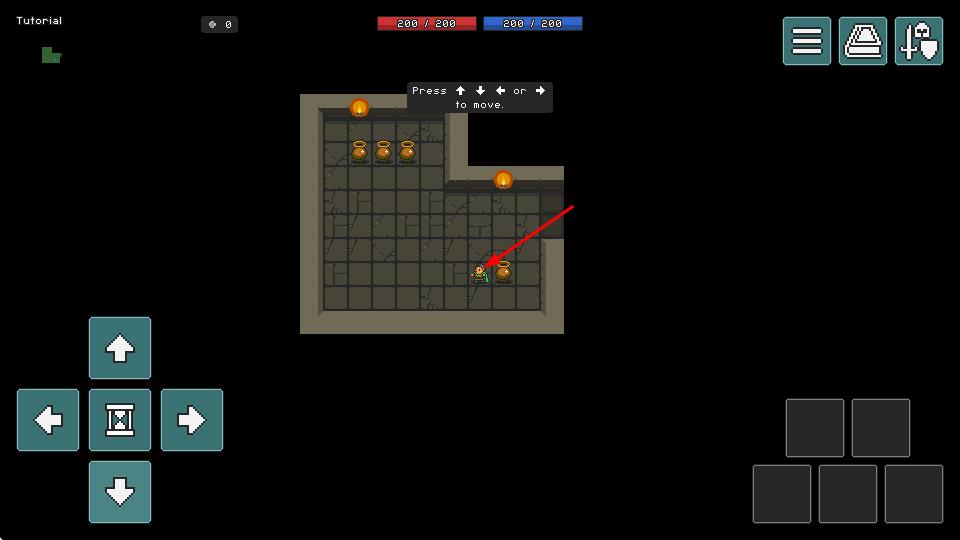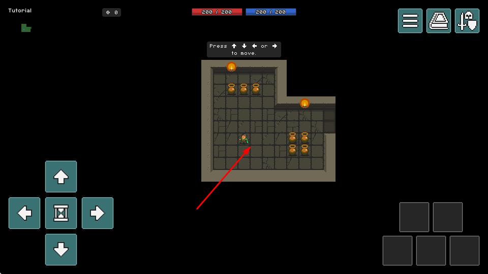 1、像素地牢场景构建:采用复古像素画风打造地牢迷宫,破败墙体、昏暗灯光与动态光影结合,营造出经典怀旧的探险氛围。