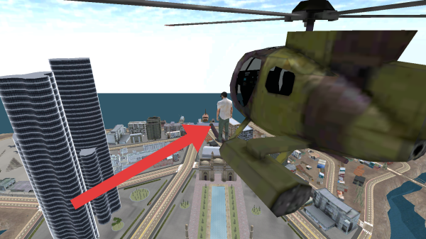 1、画面中有直升机、城市建筑、人物等,展现了高空俯瞰城市、可操控角色互动(如登上直升机等)的场景,通常强调自由探索、犯罪模拟、驾驶与战斗等玩法。