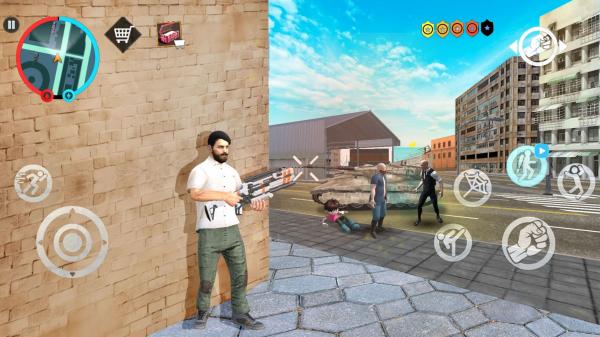 3、玩家操控角色在城市场景执行任务、战斗互动,强调高自由度冒险、犯罪模拟,可驾驶车辆、使用武器战斗,探索城市完成多样内容。