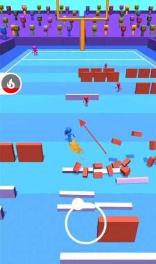 3、场景特色彩色观众席,多样障碍设计(红砖墙、跳台),考验操作技巧,通过精准跑位、闪避,完成高难度达阵。
