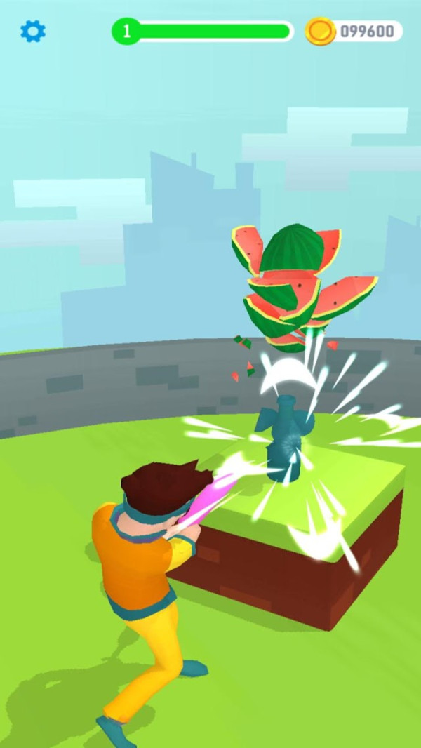 3、场景目标城市背景,专注砍瓜,提升操作精准度,积累金币解锁新武器、场景,挑战更高难度水果(如菠萝、榴莲)。