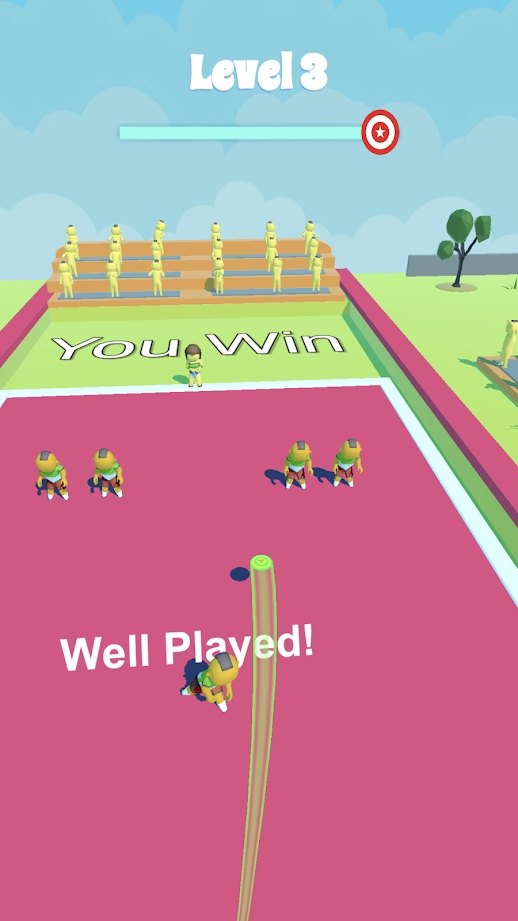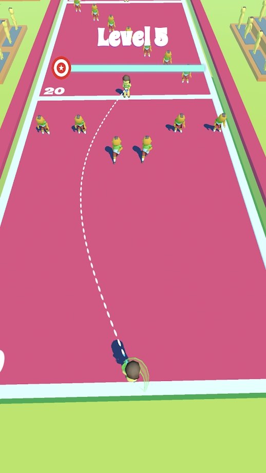 3、难度提升随关卡推进,跑道对手增多、目标距离变远,需精准控制投掷参数,积累得分,解锁更高“Level”。