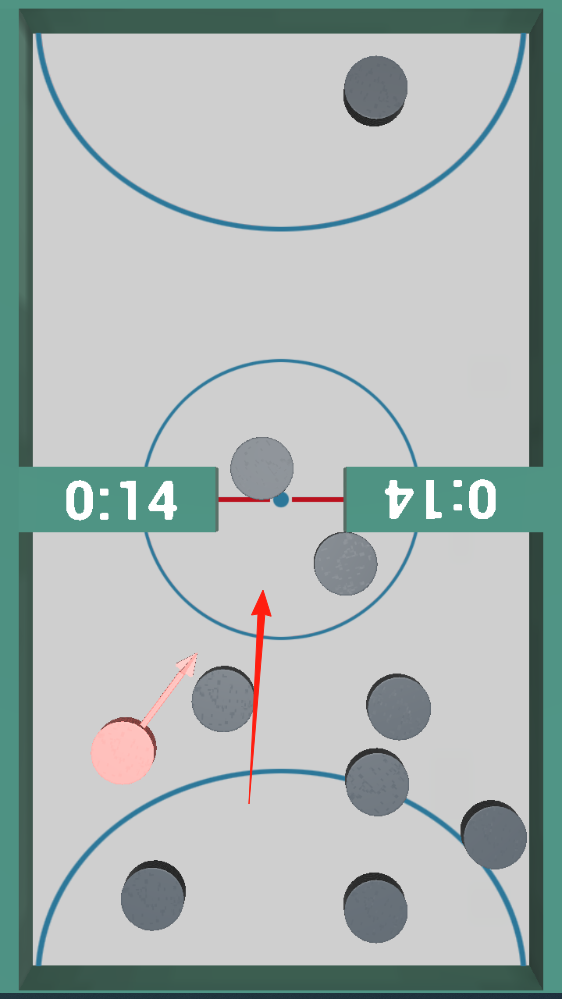 1、玩法机制通过滑动屏幕(SwipeLeft/Right),控制粉色球杆,击打“HockeyPuck”(冰球),在桌面冰球场,撞击灰色对手球,争取将冰球打入对方区域得分。