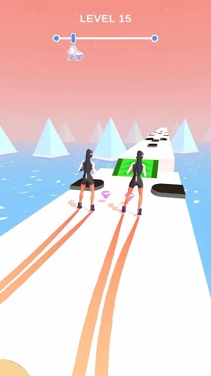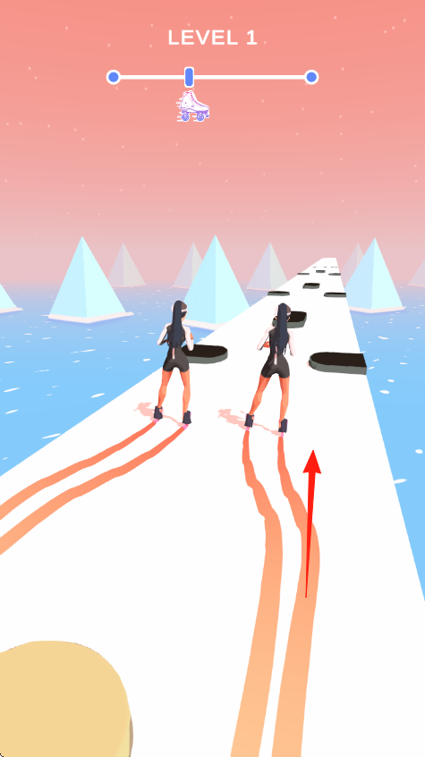 1、双角色协调技巧:遇到直线赛道时,保持两个角色居中同步前进;接近分离式轨道前,提前向两侧滑动让角色分开,确保各自进入对应轨道。