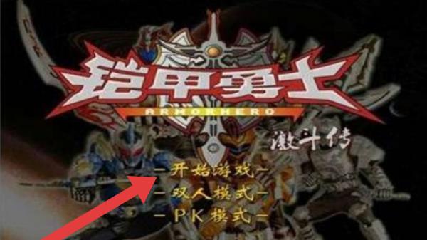 1、呈现标题、“开始游戏”“双人模式”“PK模式”等选项,点击【开始游戏】方可进入,属于铠甲勇士系列相关作品。