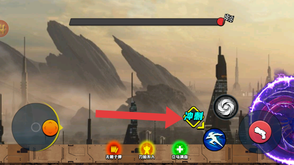 1、呈现了战斗场景、技能按钮(如“超动”“无需子弹”等)、操作指引(前进、移动到这里)等实体信息,能识别出相关玩法、界面元素。