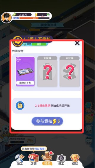 4、随着等级提升,将逐步解锁更多区域与更高价值箱体,甚至能设立分店、委派员工寻宝,扩展经营版图。