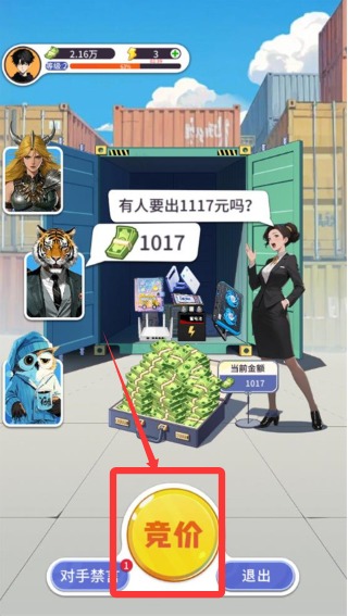 2、竞拍中需要点击竞价,竞拍集装箱中的商品,价高者得。