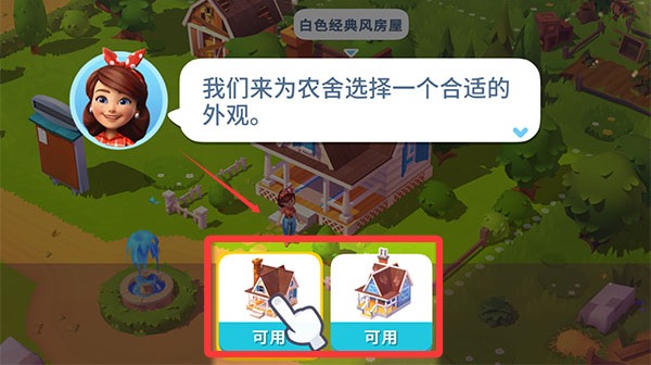 2、修理好喷泉后,点击喜欢的外观,为自己心爱的农舍换一个外观。
