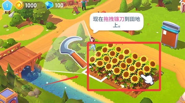 3、拖动镰刀便可以收割这些植物,收割完成后,就可以拖动种子重新种上。