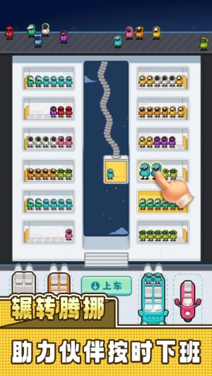 我等的好急最新版帮助下班员工快速匹配对应颜色的班车。通过观察人群服饰色彩,合理安排乘车顺序确保高效通行。特殊救援关卡需规划天台撤离路线,保障市民安全转移。随着关卡推进,将面临更复杂的交通状况与时间压力。轻松简单的操作搭配独特的配色玩法,带来别具一格的解谜体验。