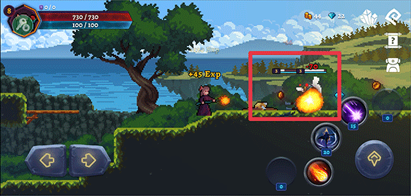 2、当遇到敌人时,灵活运用移动、跳跃、技能等按钮将其击杀即可,击杀后的敌人将转化为金币和钻石。