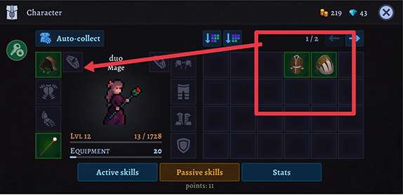 3、获得装备后,可以进入背包,然后将右边的装备拖动至角色区域中即可穿戴成功。