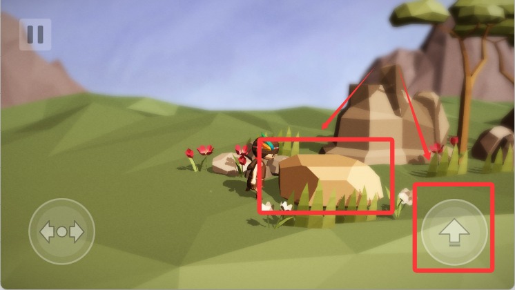 1、控制界面简洁,左侧摇杆负责移动,小姑娘可向前、后、左右漫步,右侧跳跃键助力踏上石台或避开潜伏的危险动物。