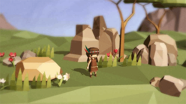 1、低边形3D画面如同泥土捏塑,英雄小姑娘、崎岖石块与粗犷树木都以简约多边形构筑,朴素却富有现代美感,让人耳目一新。