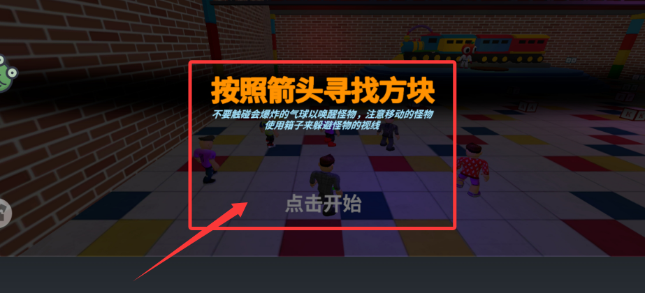 3、跟随箭头指引寻找隐藏方块,利用木箱作为掩体躲避巡逻怪物,金属气球会触发警报机制。