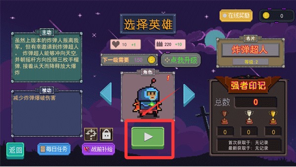 1、进入游戏后点击屏幕下方按键开始游戏。