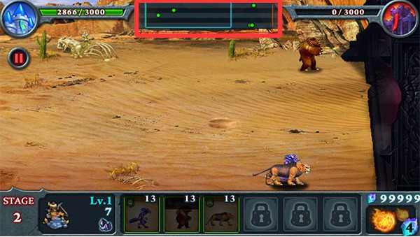 2、进场后魔兽会自动攻击,主公可通过点击释放范围型技能或单体爆发技,如烈焰风暴与狙击箭雨等,改变战局走势。