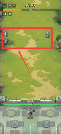 1、进入战斗后,通过拖拽或点击界面下方兵种图标来部署步枪兵、机枪兵等基础部队,他们会自动进攻途径上的敌人,为场面打下坚实基础。